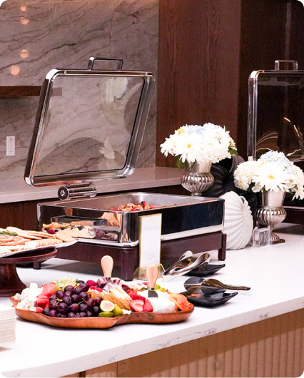 As a full-service event partner, PINX goes beyond catering services to manage décor, floral design, and event planning. We have a team that handles every step of the design process– everything from centerpieces to lighting concepts, ensuring visual cohesion with your venue. With this holistic approach, PINX provides peace of mind and execution, transforming your wedding day into an effortlessly cohesive experience where every visual and flavor connects beautifully.